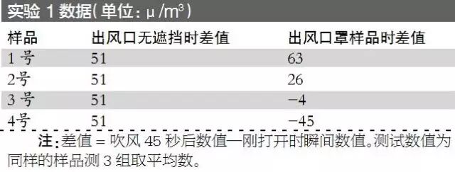 解释:上述差值代表PM2.5浓度前后的变化情况。在无遮挡的情况下,电吹风机工作时,出风口附近的PM2.5浓度是上升的(即为正值)。而样品1在测试中,PM2.5的浓度差值比起无遮挡时的浓度差值还高,也就是说,罩上该样品后,出风口的PM2.5浓度上升幅度加大了。