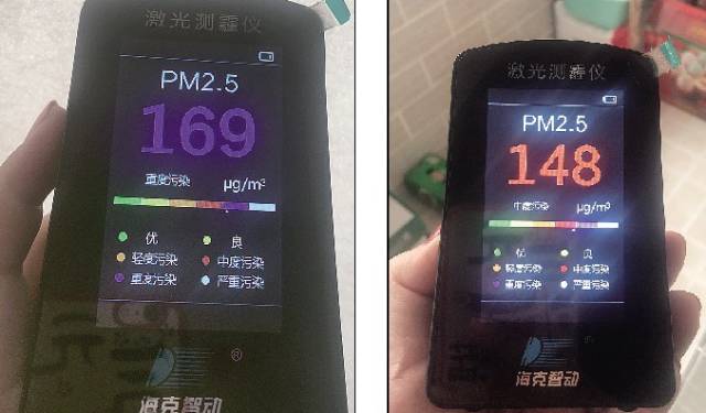而室内PM2.5浓度为148μ/m3
